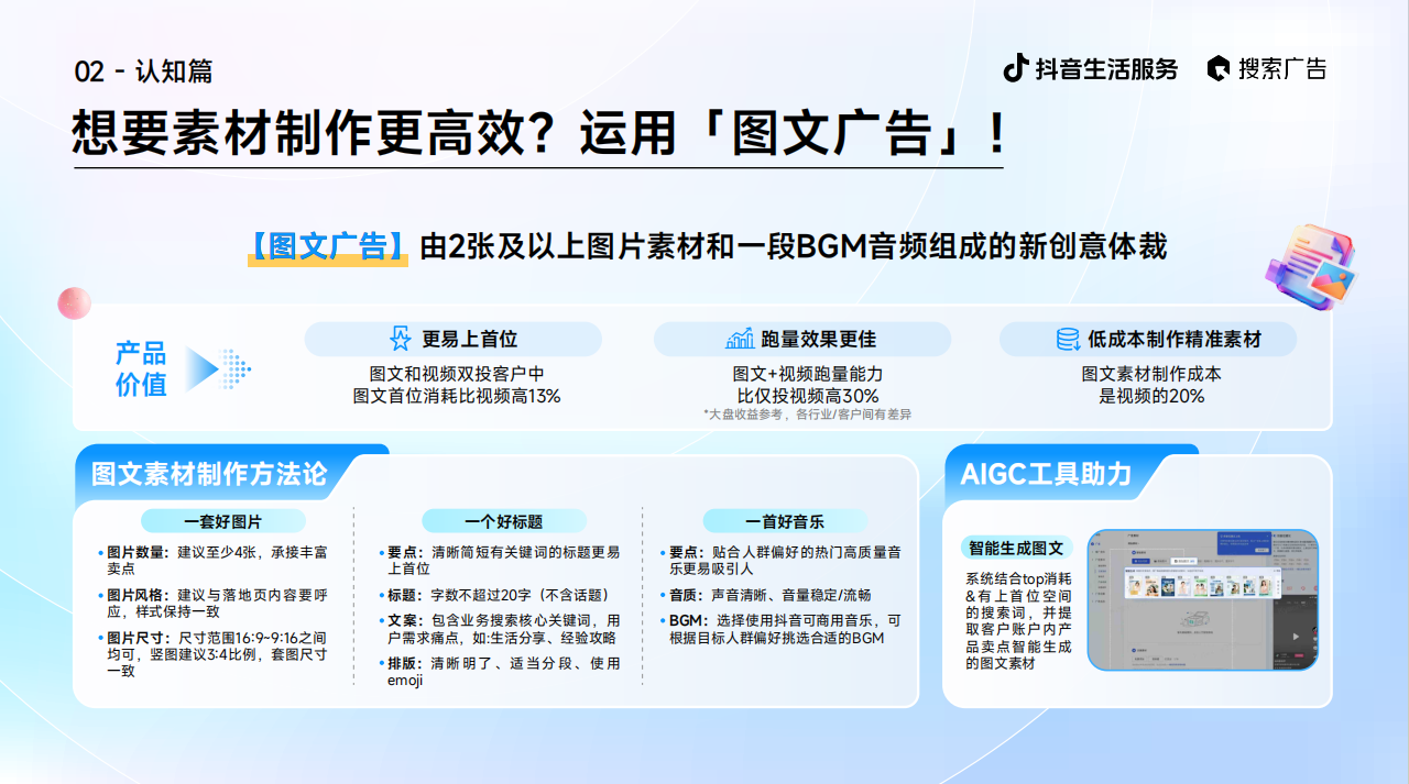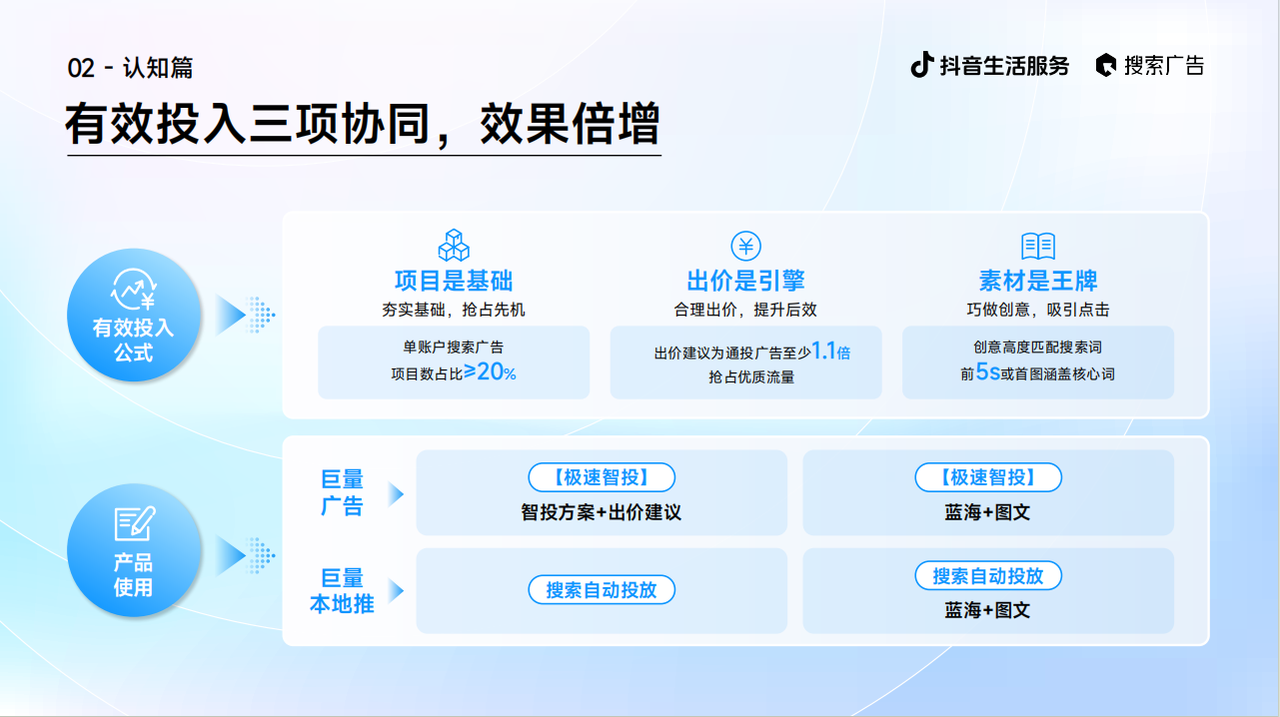 导致投放结果大打扣头、错失优良客源。抖音平台上的搜刮行为已成为用户表达需求、决策消费的焦点径。经计较,很多商家正在投放搜刮告白时容易陷入认知误区,精准婚配商家方针客群,供给了从项目搭建、出价策略到素材创做的全链处理方案,